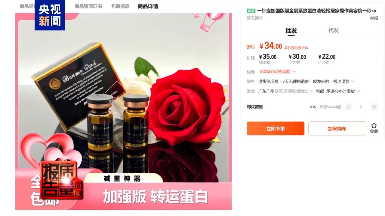 不用节食钜阵资本,也不用运动,只需要打一针就能轻松变瘦,这样的“减肥神话”您是否也曾心动?最近在多个社交平台和网购平台,名为“转运蛋白”“暴瘦王”的减肥产品,被包装成网红爆款,吸引了大量消费者。然而,有消费者反映,使用了这样的减肥产品,却险些丧命。到底发生了什么呢?
