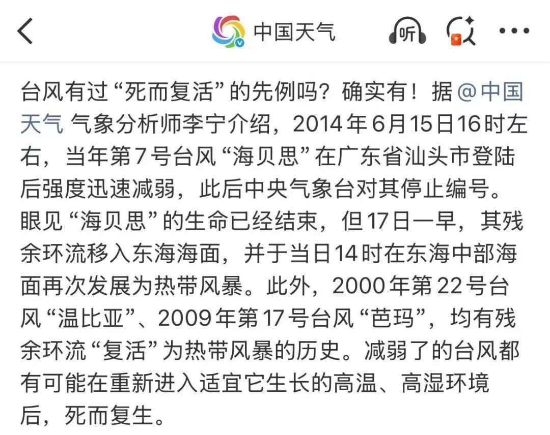 曾有台风“复活”的先例