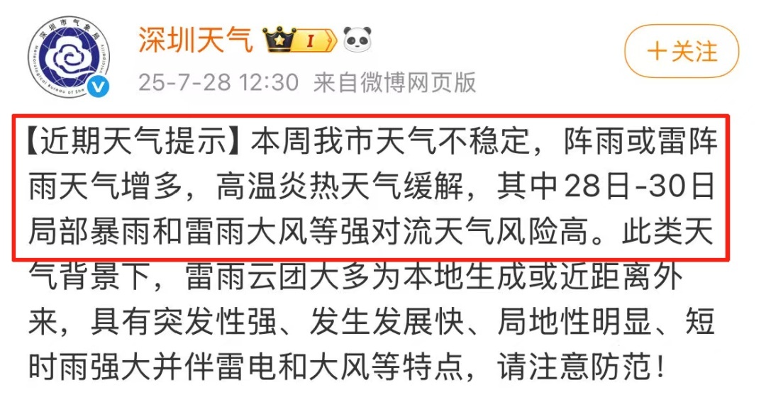 据“深圳天气”消息